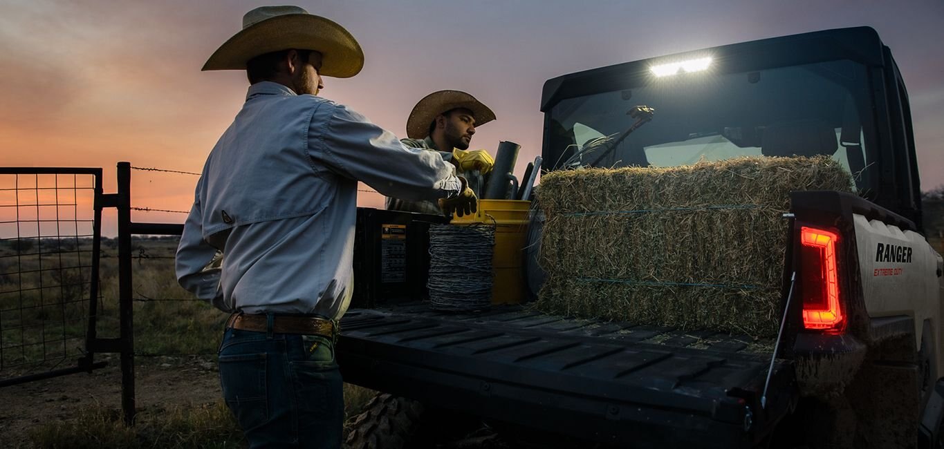 A rear work light offers added lighting over the cargo box for early morning or late night tasks. On the inside, an overhead switch panel provides quick and convenient access for additional lighting or accessory add-ons.