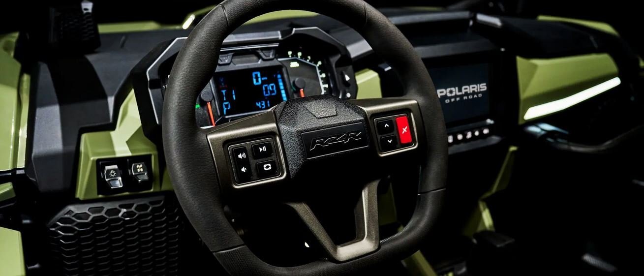 High Assist Electronic Power Steering with Quick Turn Rack; Race Inspired Steering Wheel with Tilt and Telescoping Adjustment; DYNAMIX and RIDE COMMAND Push Button Controls